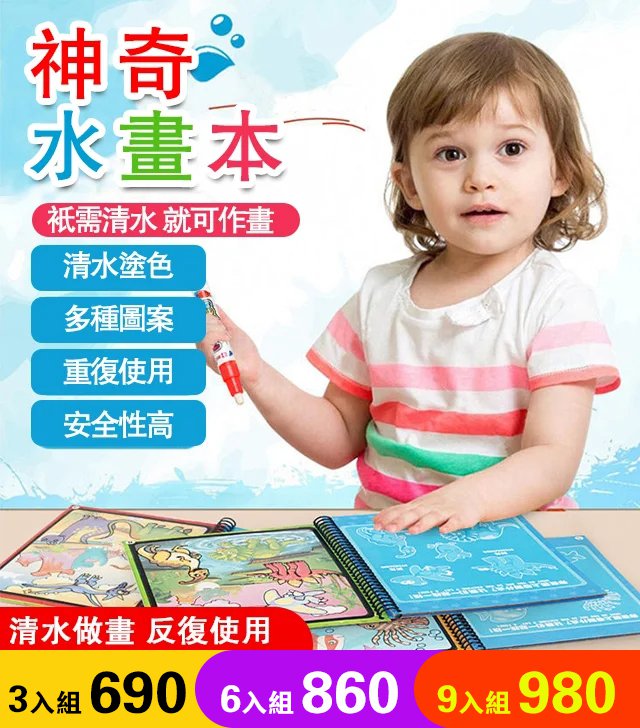 12分鐘前寶寶創意魔法塗鴉水畫本 - 三入組$690(每入230)